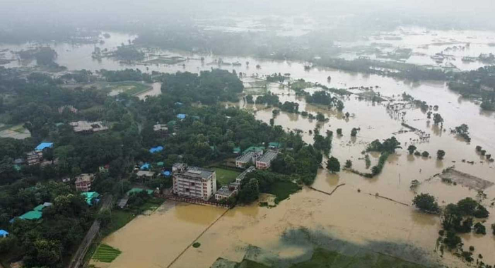 Nine districts of the country have been affected by flash floods caused by landslides and rains. Most of the people of these districts are in trouble due to knee-to-waist level water in their houses. All rural roads and croplands have been submerged in the flood water. Ponds and farm fish have been washed away.