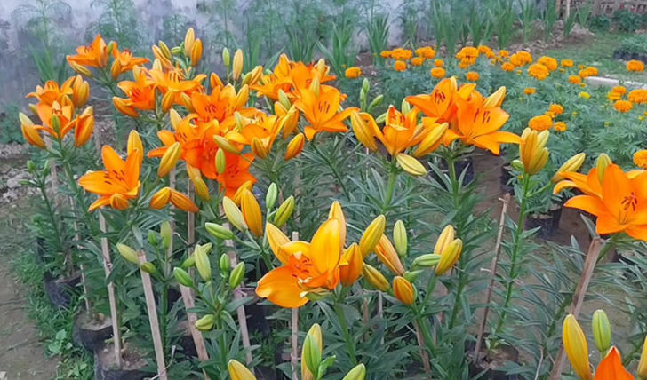 After one and a half months of planting the tubers, sweet-smelling orange lilies have bloomed in Sathoai Marma’s garden. This amateur flower preserver and entrepreneur cultivated lilies with 200 experimental tubers in the Women’s College area of Khagrachari city in collaboration with a private company.