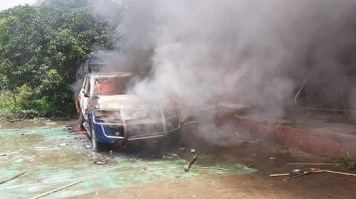 Police station, food warehouse, land office, and A. League office caught fire; 3 cars were burned
